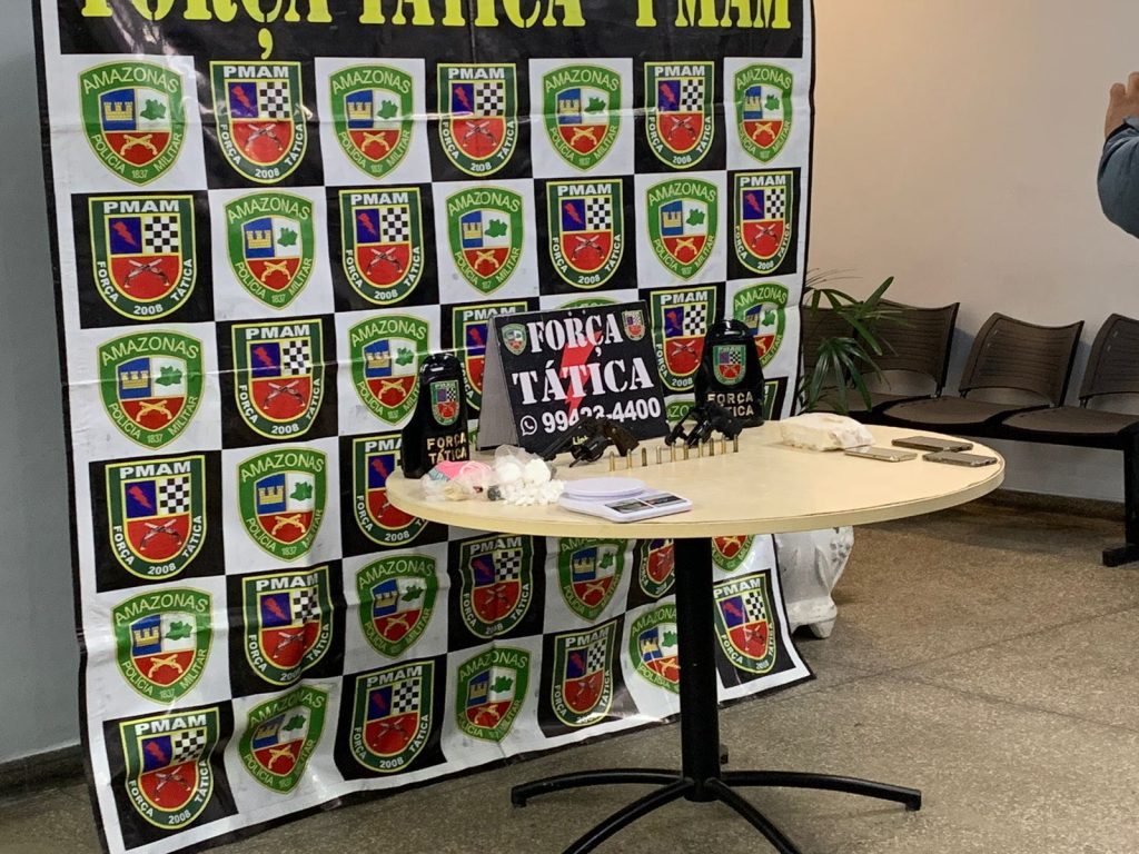 Manaus (AM) – Dois indivíduos identiticados E.F.R, de 20 anos, e M.S.P, de 29 anos, usuário de tornozeleira eletrônica, foram presos na noite desta quinta-feira (20), por volta das 19h, na rua Granada, no bairro Tancredo Neves, na Zona Leste de Manaus. Eles estavam com duas armas de fogo, munições e drogas.