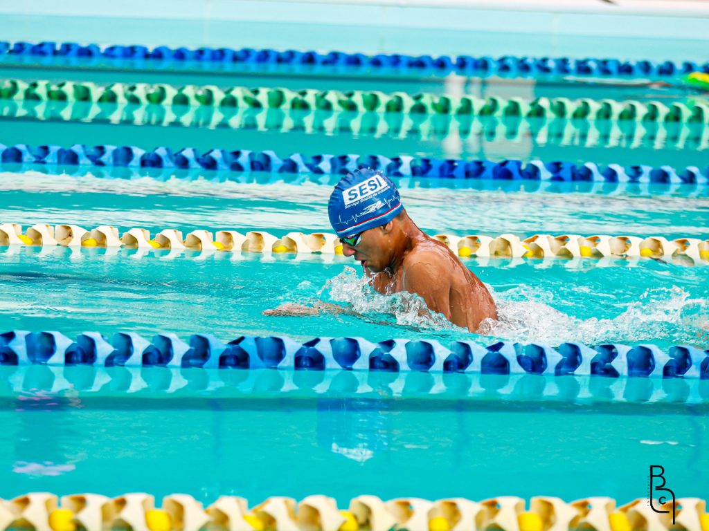Kaio Lopes, 13 anos, é aluno do 8º ano, pratica natação há sete anos no SESI Clube do Trabalhador e foi campeão estadual no Jebs nos 50m e 100m costas da categoria infantil 2. O atleta afirma que tem se dedicado muito e está confiante.