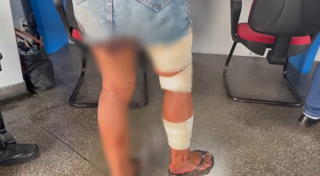 A suspeita deve responder por lesão corporal grave e irá ficar à disposição da Justiça.