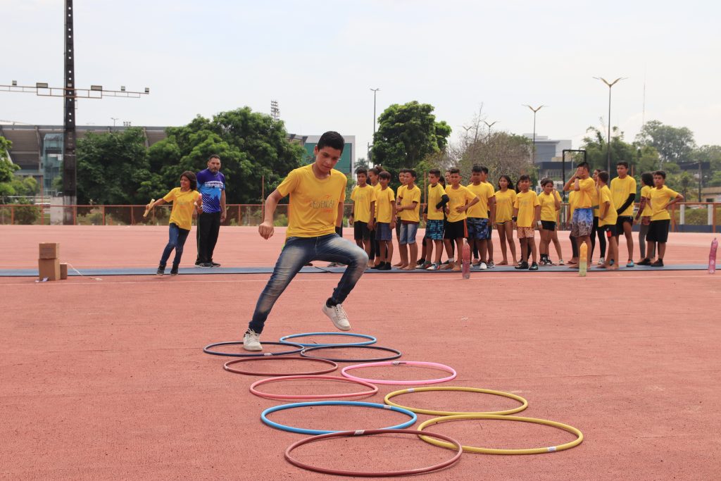 Manaus (AM) – A Prefeitura de Manaus, por meio da Secretaria Municipal de Educação (Semed), participou do encerramento das atividades do projeto “Desvendar Esporte” com a realização de um festival esportivo, na pista de atletismo da Vila Olímpica de Manaus, no bairro Dom Pedro, zona Centro-Oeste da cidade. A programação é resultado da parceria com o Instituto Incentivar, idealizador do projeto em seis escolas municipais, beneficiando 336 alunos do 6º ao 9º ano do ensino fundamental.
