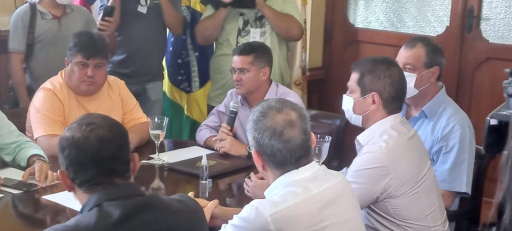 Manaus (AM)- O prefeito de Manaus, David Almeida (Avante) convocou uma reunião de urgência em nome da Zona Franca Franca de Manaus na manhã desta segunda-feira (28), no Palácio Rio Branco, Centro Histórico de Manaus. Lideranças políticas, empresariais e de classe do Estado fizeram parte do encontro aberto à imprensa.