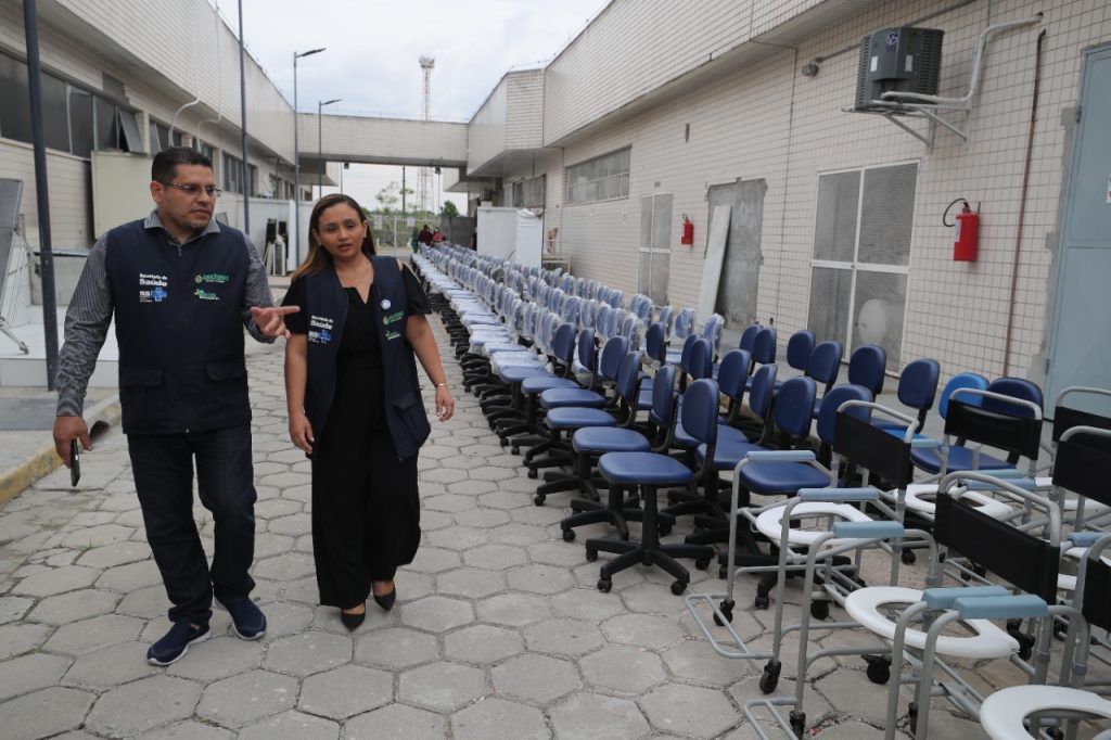 Além das 26 cadeiras de banho e 100 suportes de soro, também foram entregues: 100 cadeiras fixas; 100 cadeiras para a secretaria da unidade; 70 escadinhas e nove cadeiras de rodas.