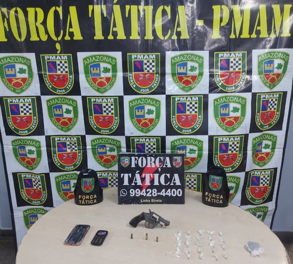 Com ele, foi apreendido um revólver calibre 32, 19 porções de oxi, uma porção de maconha e dois aparelhos celulares. O homem já tinha passagem pelo crime de furto.