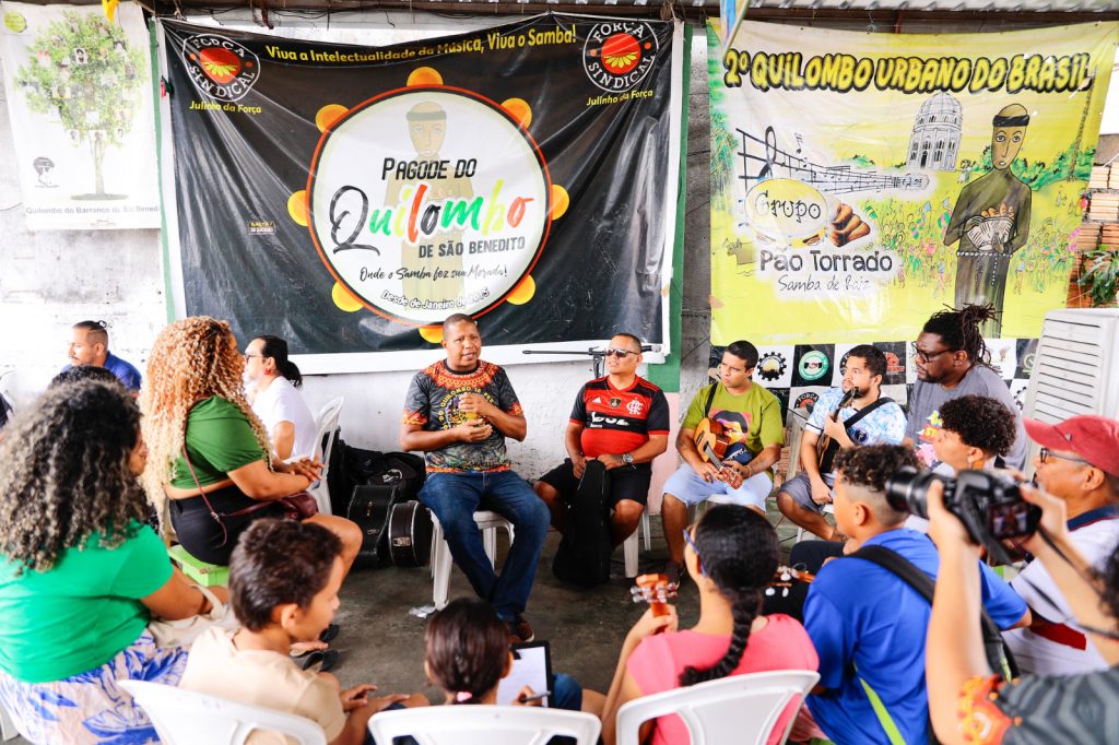 Manaus (AM) – O Quilombo do Barranco de São Benedito realizou a oficina “Do Quilombo se Fez Samba Raiz”, que reuniu 127 pessoas entre crianças, jovens e adultos, na manhã de sábado (4). O projeto foi contemplado pelo edital Manaus Faz Cultura, da Fundação Municipal de Cultura e Eventos (Manauscult). O Quilombo está localizado na Av. Japurá, 1362 – Praça 14 de Janeiro, Zona Sul.