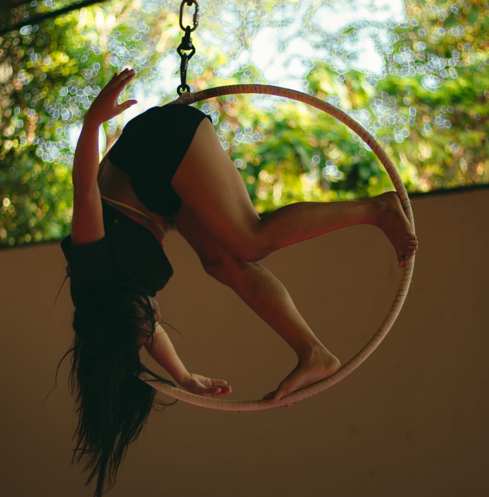 A acrobata Laísa Silva atua como professora de balé e, na arte circense, se arrisca realizando atividades aéreas em aparelho e tecido, se dedicado para realizar as atividades artísticas com perfeição, mas garante realizadas com proteção.
