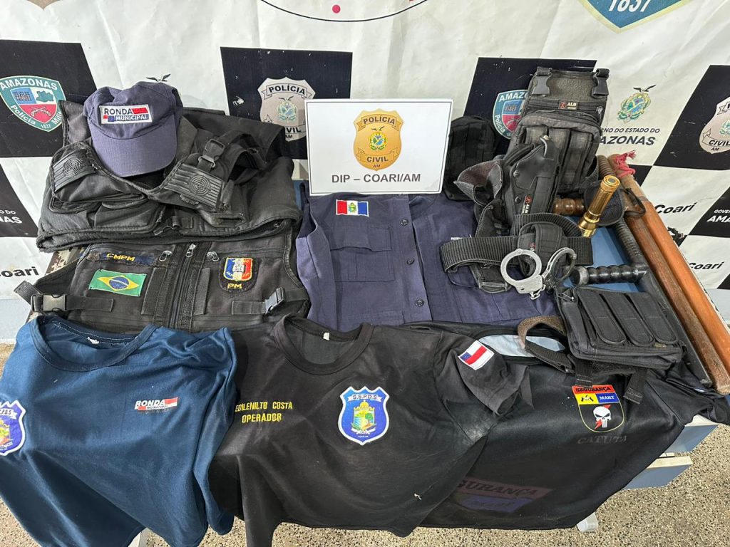 Ainda conforme a autoridade policial, durante o cumprimento do mandado judicial, foram apreendidos coletes, fardamento da Secretaria de Segurança do município, algemas e outros objetos na residência dele.