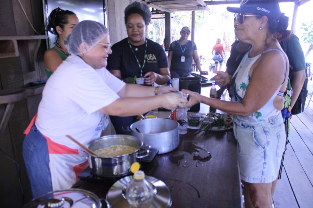 Simultaneamente à exposição, aconteceu a oficina “Líderes Comunitárias e o Fazer Culinário Presente”. A atividade foi em forma de tutorial, ministrada pela Professora Cláudia Araújo, do curso de Turismo da Universidade do Estado do Amazonas (UEA).
