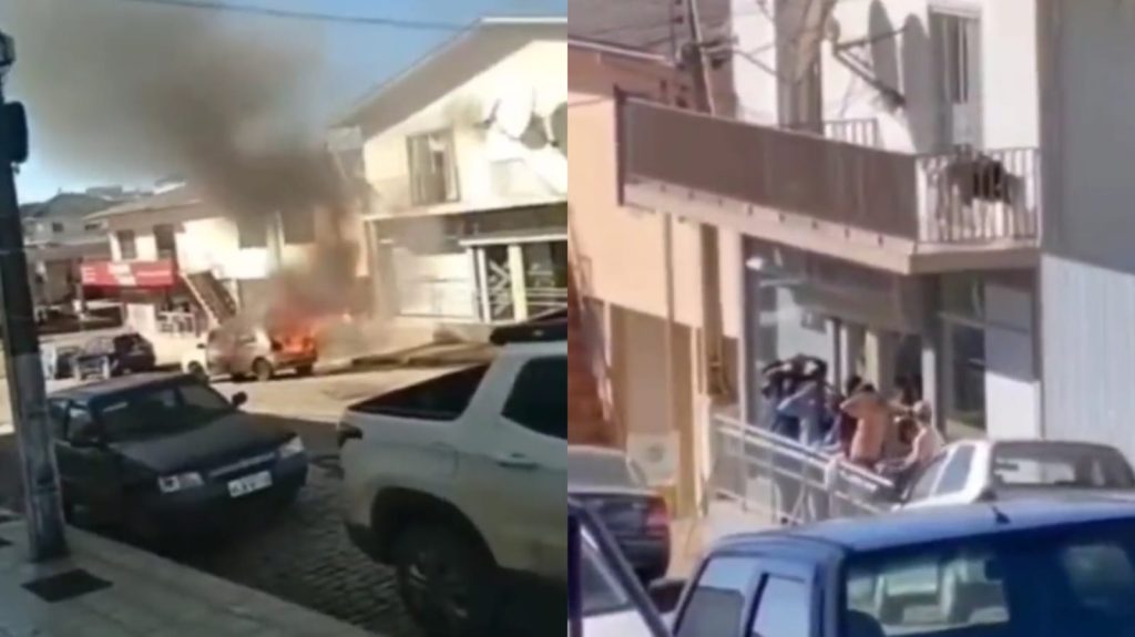 🚨 VÍDEO: assalto a banco tem troca de tiros entre bandidos e policiais pic.twitter.com/28FUaOxwes