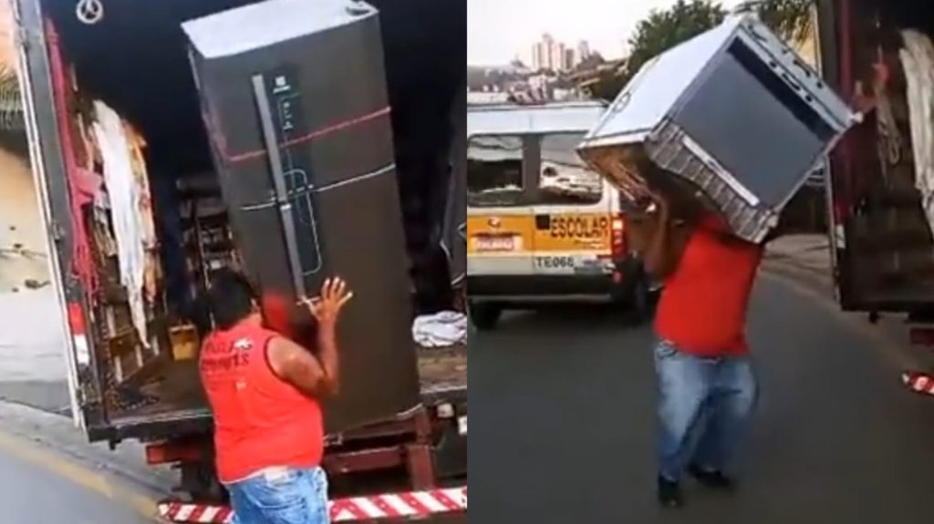 📹 Homem viraliza ao dançar funk enquanto carrega geladeira nas costas. pic.twitter.com/LRtdqs7ywg