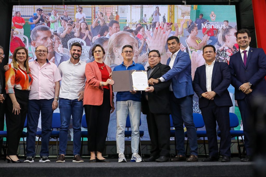Manaus (AM) – O prefeito de Manaus, David Almeida, em parceria com a secretária-adjunta de Gestão do Patrimônio da União, Caroline Gabas Stuchi, e o superintendente do Patrimônio da União no Amazonas (SUP), Mauro Leno Rodrigues de Souza, assinou o termo de cooperação técnica que garante a regularização fundiária do bairro Colônia Antônio Aleixo, localizado na zona Leste, na tarde desta quarta-feira (14), beneficiando mais de 900 famílias.