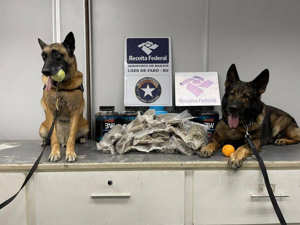A Receita Federal apreendeu 34 quilos de maconha e dinheiro falso durante operações no Aeroporto e Correios de Manaus, na última quarta-feira (14).