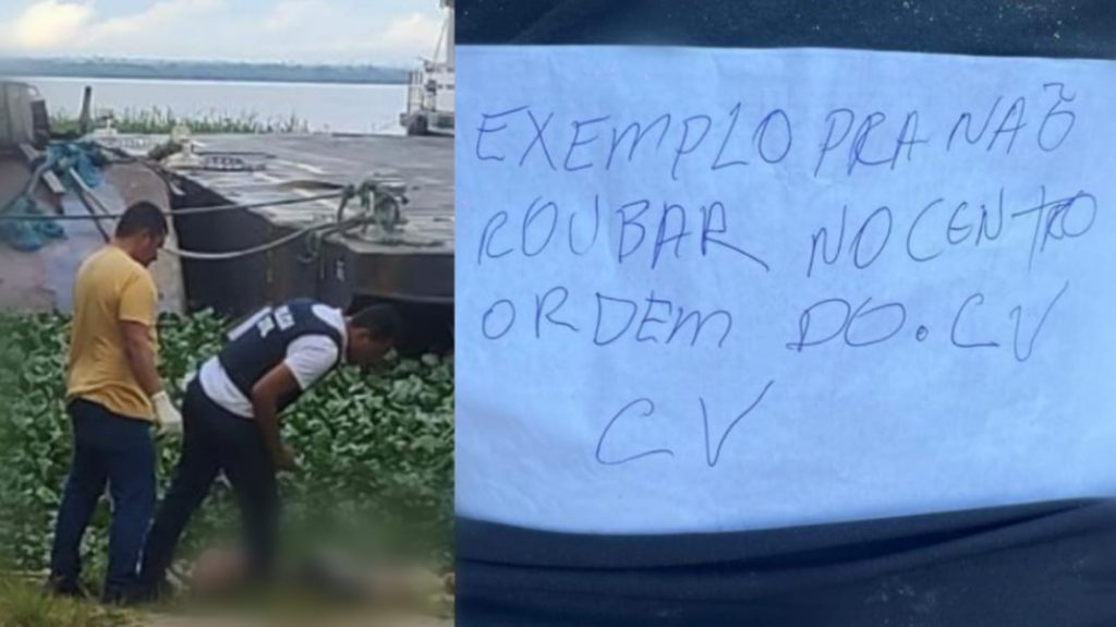 Com os braços e pernas quebrados, o corpo estava com um saco na cabeça e as mãos e pernas amarradas para trás. Com a vítima, também foi encontrado um bilhete, supostamente, da facção Comando Vermelho (CV) e um recado: “Exemplo pra não roubar no Centro”.