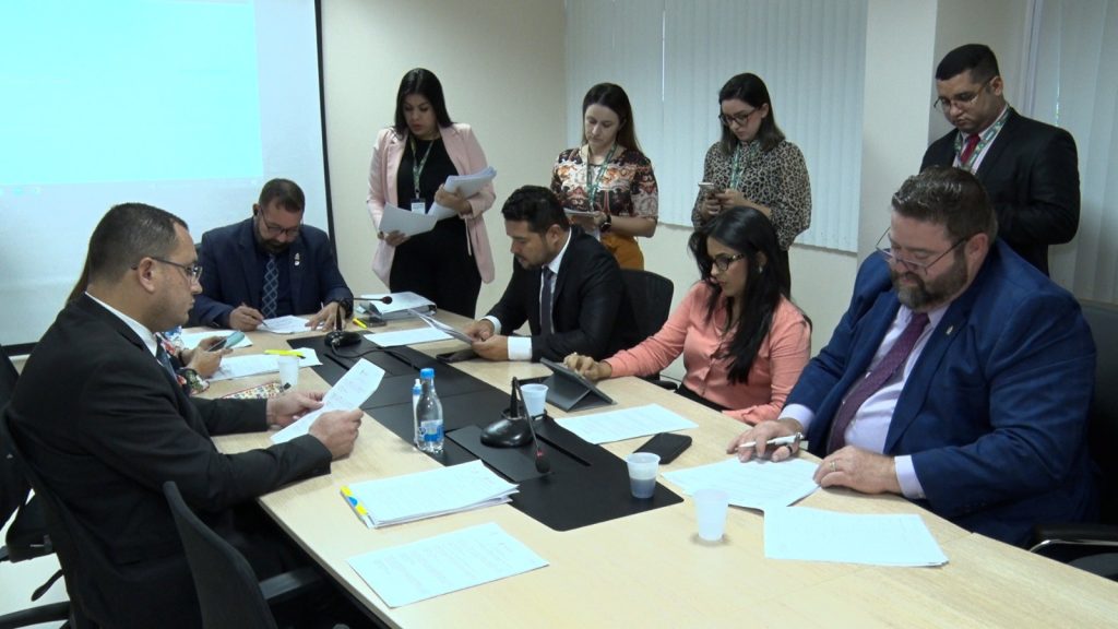 A reunião, conduzida pelo vereador Gilmar Nascimento, presidente da CCJR, contou com a presença dos vereadores Fransuá Matos (PV), Raiff Matos (DC), Thaysa Lippy, professora Jacqueline (União Brasil) e William Alemão.