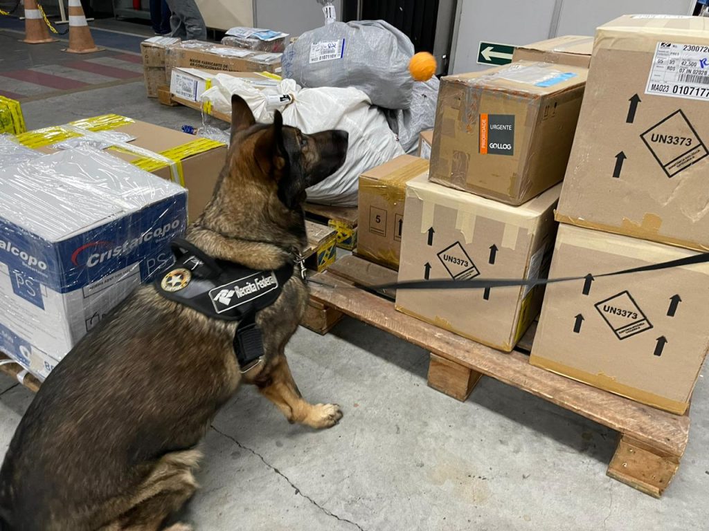 Um equipe da Receita Federal identificou uma carga suspeita que passou pelo procedimento de escaneamento e pelo crivo olfativo por agentes caninos.
