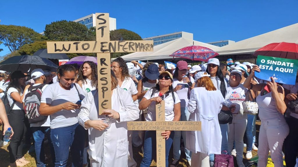 Brasília (DF) – O Conselho Regional de Enfermagem do Amazonas (Coren-AM) realizou hoje, em Brasília, sua participação no Ato Nacional de Mobilização, ocorrido na praça das Bandeiras, em frente à sede do Ministério da Saúde. O objetivo do Coren-AM é cobrar o cumprimento total da lei do piso salarial da enfermagem.