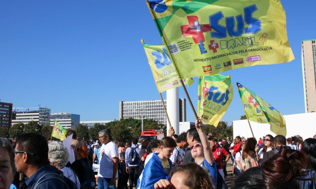 No ato estavam participantes da 17ª Conferência Nacional de Saúde, evento que reúne em Brasília cerca de seis mil pessoas e representa a retomada do diálogo e da participação popular na construção das políticas para o SUS.