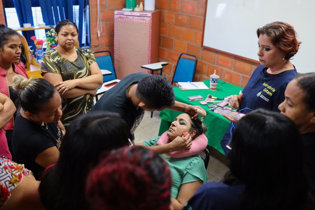 Manaus (AM) – Moradores do Parque Residencial Mestre Chico II, no bairro Cachoeirinha, zona sul de Manaus, contemplados pelo Programa Social e Ambiental de Manaus e Interior (Prosamin+), estão aprendendo os segredos e as técnicas de maquiagem profissional.