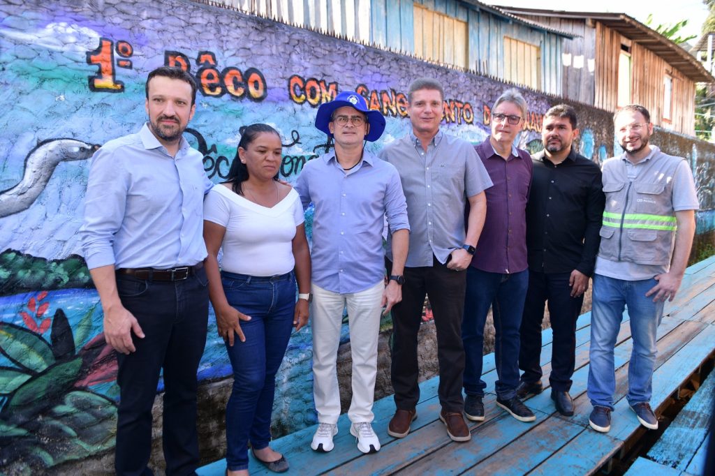 Manaus (AM) – O prefeito de Manaus, David Almeida, visitou, na manhã desta sexta-feira, 14/7, a estrutura de saneamento básico instalada no beco Nonato, no bairro Cachoeirinha, zona Sul da cidade. No local, mais de 900 moradores foram beneficiados com a instalação de redes de esgoto, em um projeto que é o primeiro do Brasil a levar o serviço a uma região de palafitas.