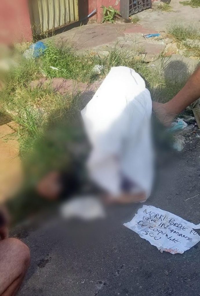 O corpo estava esquartejado, com apenas a cabeça e a mão da vítima dentro do saco, e ao lado foi encontrado um bilhete escrito “morri porque sou informante do coquinho”.