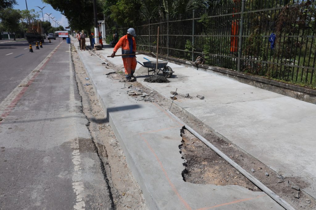A reconstrução do passeio na ciclovia localizada na avenida Coronel Teixeira, bairro Ponta Negra, zona Oeste, começou nesta segunda-feira (17) e será custeada por uma casa de shows, conforme informou o prefeito David Almeida. No último dia 15, o local foi utilizado de forma inapropriada por motoristas que participaram de um evento e a calçada ficou destruída.