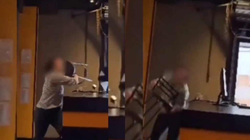 Uma aluna quebrou dois computadores de uma rede de academias na manhã de terça-feira (25), em em Vitória (ES), no vídeo é possível ver a mulher pegando uma cadeira e batendo várias vezes em computadores que estavam em cima do balcão.