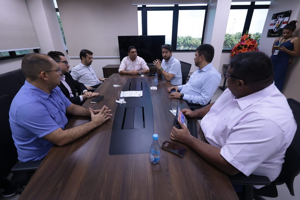 Manaus (AM) — Na manhã desta quinta-feira (03), o presidente da Câmara Municipal de Manaus (CMM), vereador Caio André (Podemos), e vereadores que integram a Comissão Parlamentar de Inquérito (CPI) da Águas de Manaus receberam o diretor-presidente da concessionária de água, Diego Dal Magro; e o diretor-presidente da Agência Reguladora dos Serviços Públicos Delegados do Município de Manaus (Ageman), Elson Andrade.