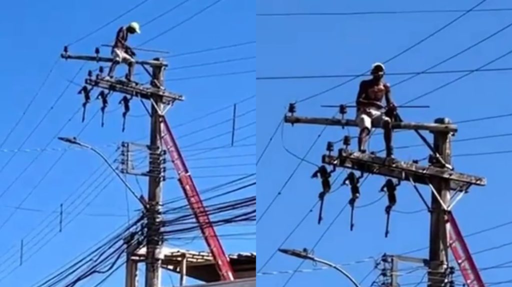 Um homem passou quase 24 horas em cima de um poste de energia em Minas Gerais, no último sábado (5). Segundo os policiais militares que estavam trabalhando na ocorrência, o poste tem cerca de 10 metros de altura e para sair de lá o homem exigiu cinco cigarros, marmita, além da presença do irmão.