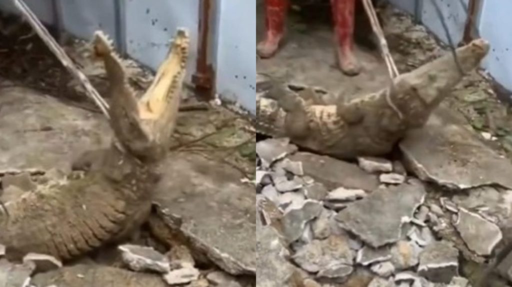 Moradores de uma cidade na Índia, ficaram em choque ao descobrir três crocodilos vivendo no subsolo de sua vizinhança.