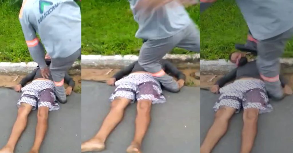 Em um vídeo registrado pelos próprios populares, é possível ver o momento em que o suposto funcionário desfere violentos chutes na cabeça da vítima, enquanto o linchamento continua.