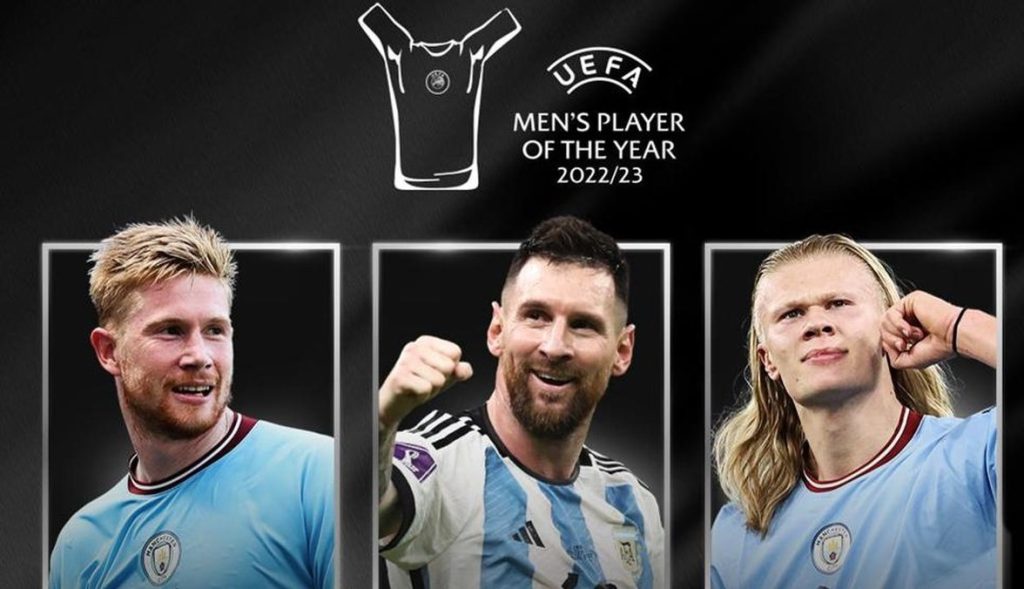 O meia belga Kevin de Bruyne e o atacante norueguês Erling Haaland, do Manchester City, e Lionel Messi, que disputou a temporada europeia pelo Paris Saint-Germain e agora está no Inter Miami, dos Estados Unidos, foram indicados para o prêmio de Jogador do Ano da Uefa em 2022/2023, informou a entidade nesta quinta-feira (17).