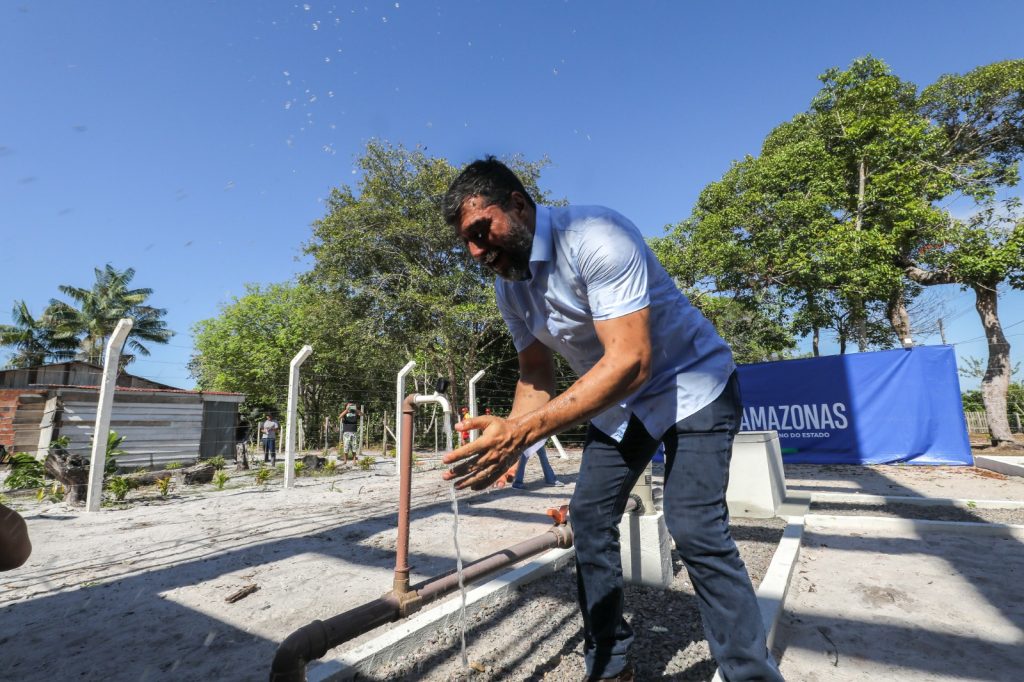 Wilson Lima também inaugura o sistema complementar de abastecimento de água do município, que complementa o sistema entregue em 2019, pelo Programa de Saneamento Integrado de Maués (ProsaiMaués), e amplia o abastecimento de água na cidade.