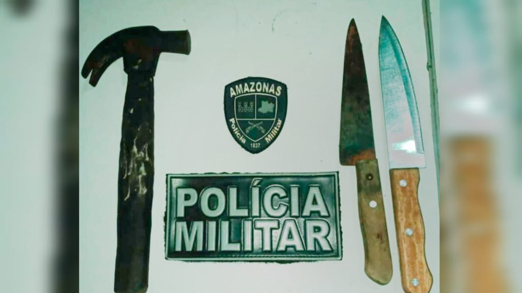 Os policiais foram ao endereço informado, onde localizaram o suspeito deitado em uma cama e armado com duas facas. À polícia, o homem confirmou ter agredido a companheira com uma martelada na cabeça.
