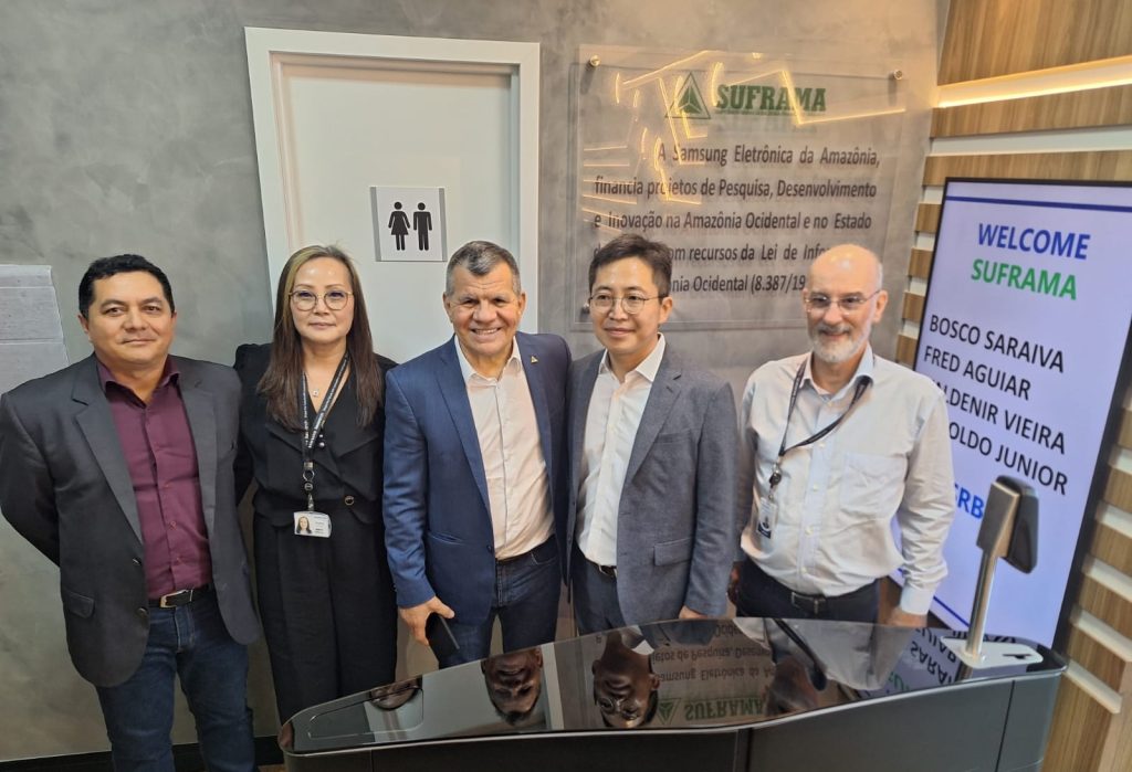 Bosco Saraiva e equipe técnica foram recebidos pelo diretor da Controladoria da Samsung/SRBR, Tar Hoon Cha; o diretor de PD&I, Fernando Campos Arruda; o gerente de PD&I e Relacionamento, Marcos Lima de Souza; a gerente sênior de Controladoria, Regina Lee; e o gerente sênior de PD&I, Eteocles Silva.