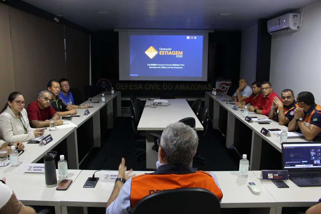 Na manhã desta quarta-feira (30), a Defesa Civil do Amazonas se reuniu com os representantes das empresas fornecedoras de energia elétrica. Durante o encontro, foi apresentado por cada empresa um plano de ação para o enfrentamento da estiagem.