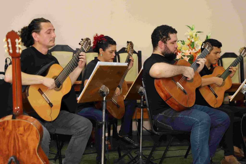Manaus (AM) – O Instituto de Educação do Amazonas (IEA), localizado na rua Ramos Ferreira, no Centro de Manaus, recebeu na tarde desta segunda-feira (11) a Orquestra de Violões do Amazonas para uma apresentação especial aos alunos dos ensinos Fundamental e Médio. A ação faz parte do projeto “Música Clássica nas Escolas”, que é executado pela Secretaria de Estado de Cultura e Economia Criativa, em parceria com a Secretaria de Estado de Educação e Desporto Escolar.