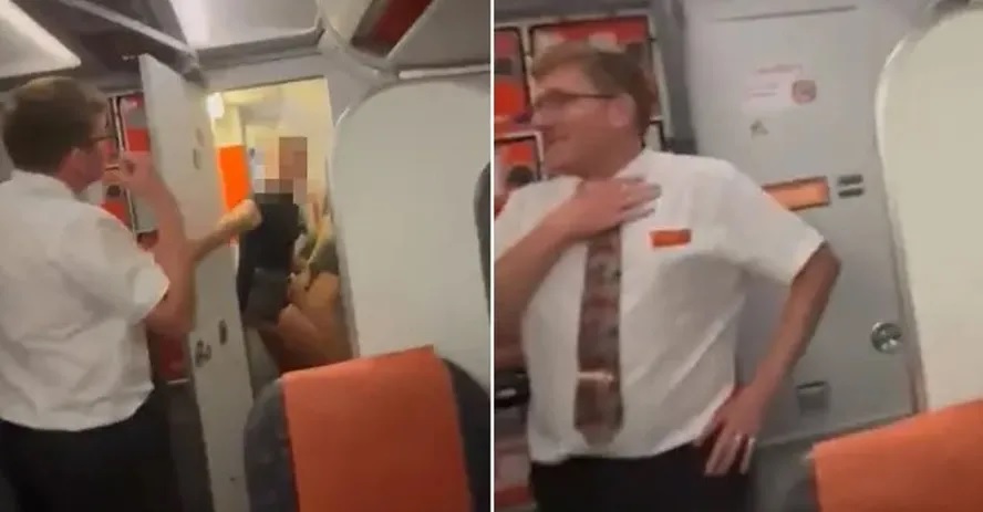 Na gravação, o comissário abre a porta do banheiro e descobre o casal seminu em ação. Em seguida, o passageiro flagrado fecha a porta para garantir a privacidade do casal. Assista: