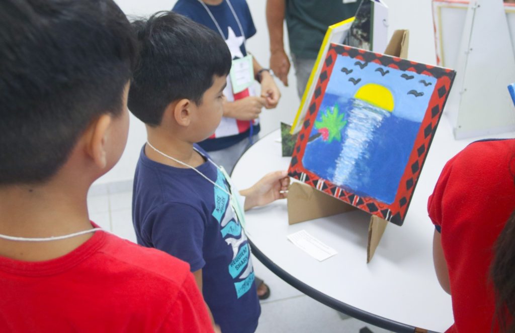 Manaus (AM) – Com objetivo de demonstrar a linguagem visual e as diferentes técnicas usadas pelos estudantes de duas escolas ribeirinhas da Prefeitura de Manaus, a Secretaria Municipal de Educação (Semed), realizou a abertura da exposição “Povos indígenas: culturas e arte”, nesta quarta-feira, 13/9, no Centro de Instrução de Guerra na Selva (Cigs), onde está localizada a Oca do Conhecimento Doutor Carim. A exposição segue até o dia 3 de outubro.