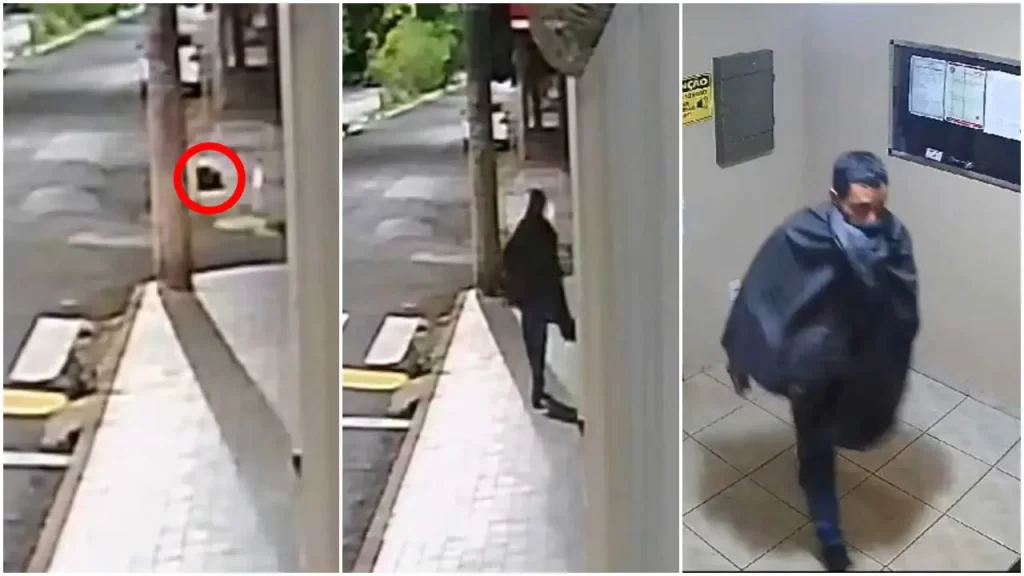 Quando percebia que a rua estava vazia, o homem se levanta e se dirigia ao condomínio. Em um de seus atos, utilizou um objeto para arrombar o portão e executar o furto. Os episódios, que chamaram a atenção pela audácia e singularidade da técnica, começaram no final de agosto, quando o criminoso invadiu o local para furtar uma televisão disponibilizada para os moradores monitorarem as câmeras de segurança.