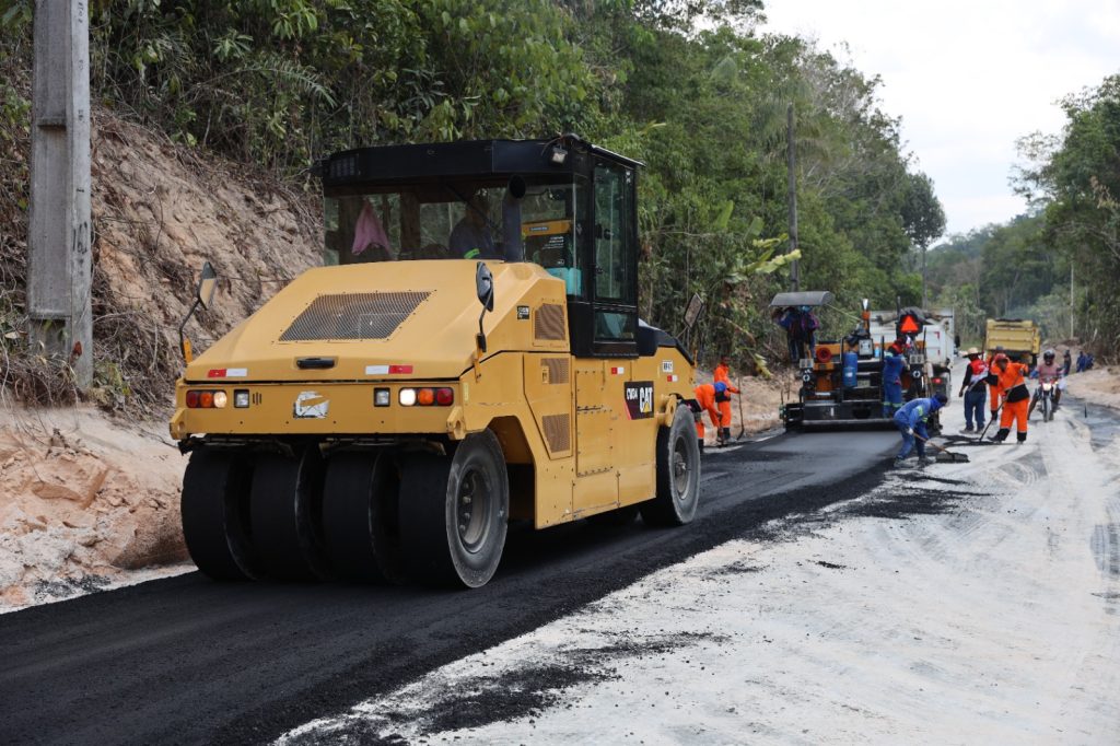 “Desde o anúncio do prefeito David Almeida, as equipes trabalham de forma ininterrupta na terraplanagem, preparando a base do pavimento. Agora chegou a hora mais aguardada pelos moradores, de receber as primeiras caçambas de asfalto”,