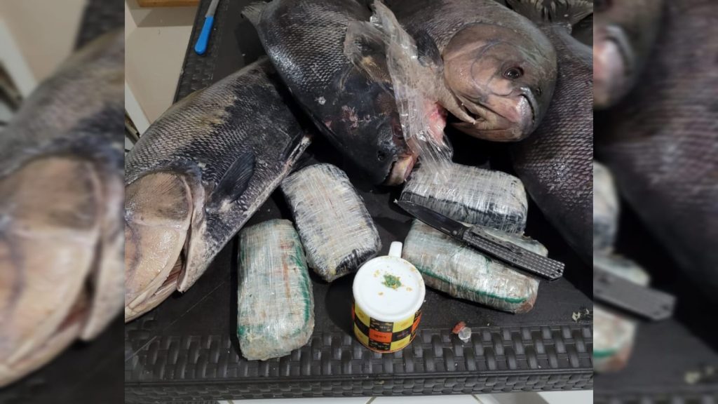Segundo a PF, a droga estava fracionada em tabletes revestidos por invólucro de plástico, dentro de peixes congelados, acondicionado no frigorífero do barco do tipo recreio.