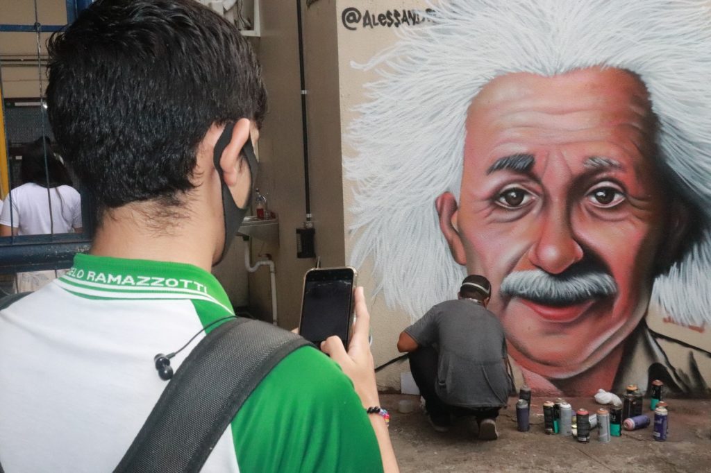“Pretendemos com essa atividade capacitar os participantes para a compreensão e uso de novos referenciais na fronteira entre os campos das artes e ciência. Será também produzido um mural-grafite com o objetivo de unir arte, ciência e interatividade com a comunidade escolar, com a participação de um artista convidado”,