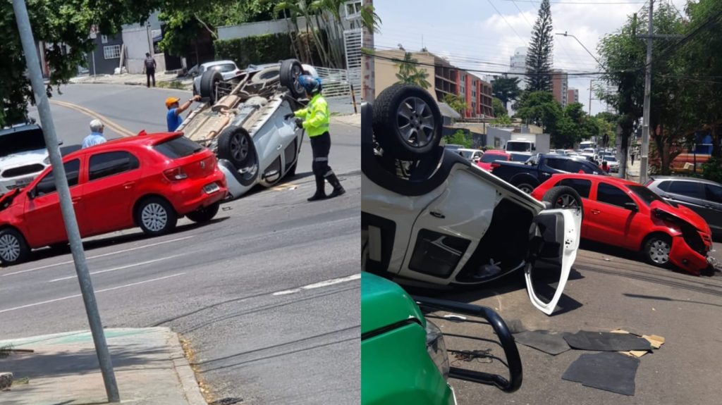 Manaus – Um carro capotou na manhã desta sexta-feira (6), após colidir com outro veículo entre as Avenidas Umberto Calderaro e Belo Horizonte, no bairro Adrianópolis, zona centro-sul de Manaus.