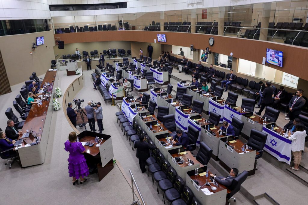 Manaus (AM) — Os vereadores da Câmara Municipal de Manaus (CMM) deixaram de lado temas como as queimadas e a estiagem que assola o Amazonas, para demonstrar apoio a Israel, que sofre ataque do grupo terrorista Hamas desde o último sábado (7). Dezenove vereadores, em sua maioria evangélicos, enfeitaram suas bancadas com a bandeira do país enquanto mais uma vez, Manaus fica encoberta por fumaça causadas por queimadas na Amazônia.