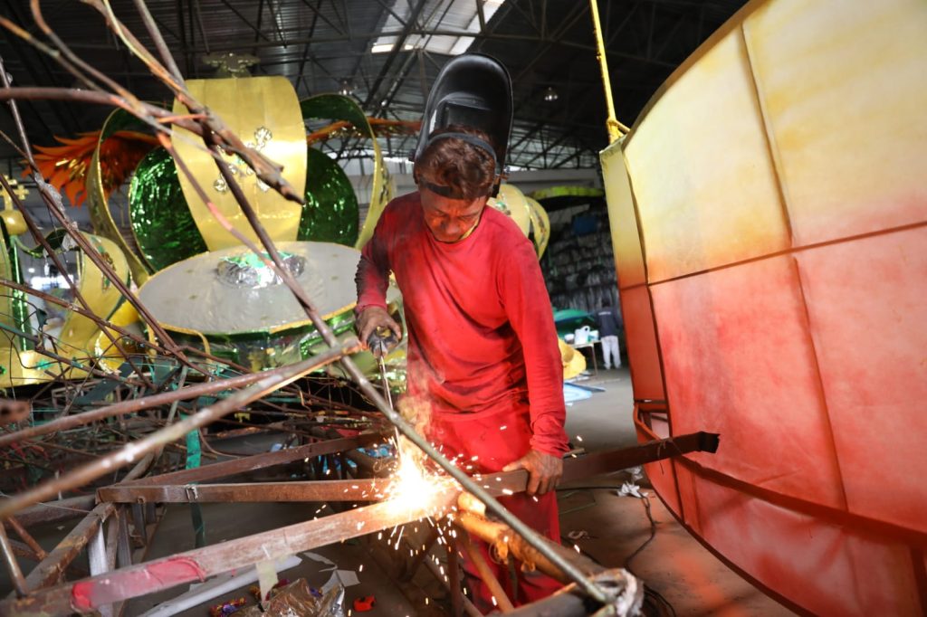 Manaus (AM)- Mais de 2 mil trabalhadores estão envolvidos na preparação das alegorias, fantasias e apresentações musicais neste Carnaval, que vai ser realizado em formato de live, de 17 a 19 de março, no Centro Convenções – Sambódromo.