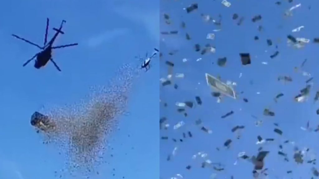 Bilionário joga mais de 5 milhões de reais de um helicóptero na República Tcheca.