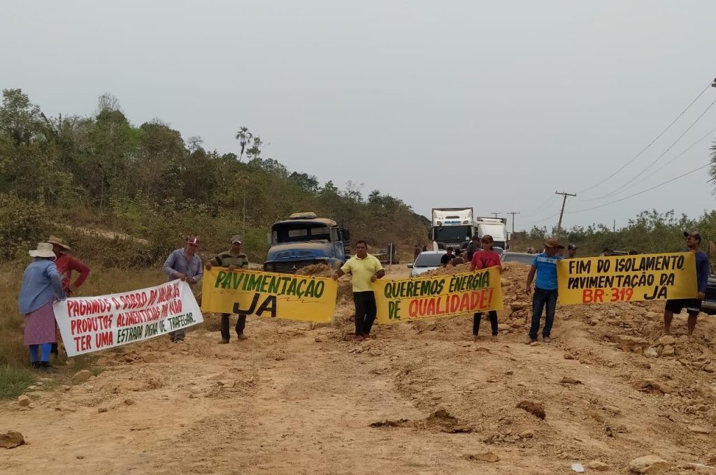 Ao menos 50 manifestantes estão fechando o KM 25 da BR-319 nesta sexta-feira (3), no Amazonas. Os moradores da comunidade São Pedro pedem melhorias como asfalto e reclamam das constantes faltas de energia.