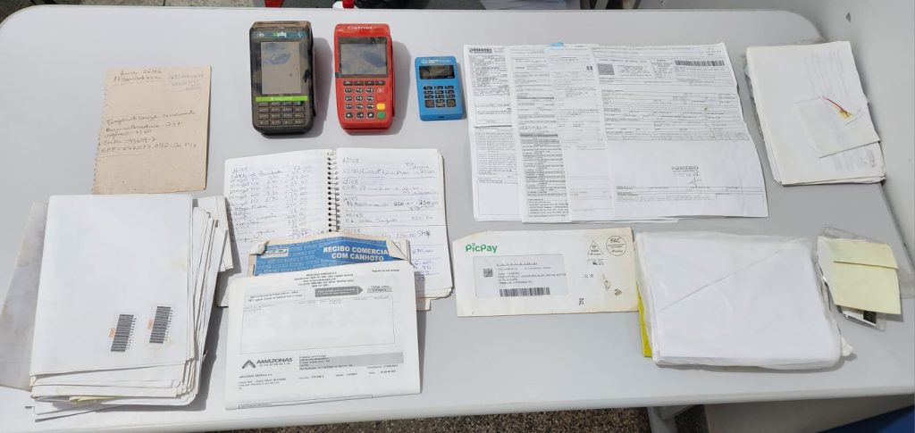 No Amazonas, conforme o delegado, durante cumprimento de mandados de busca e apreensão, foram localizadas várias notas fiscais e comprovantes de movimentação bancária em nome de infratores que estão sendo investigados.