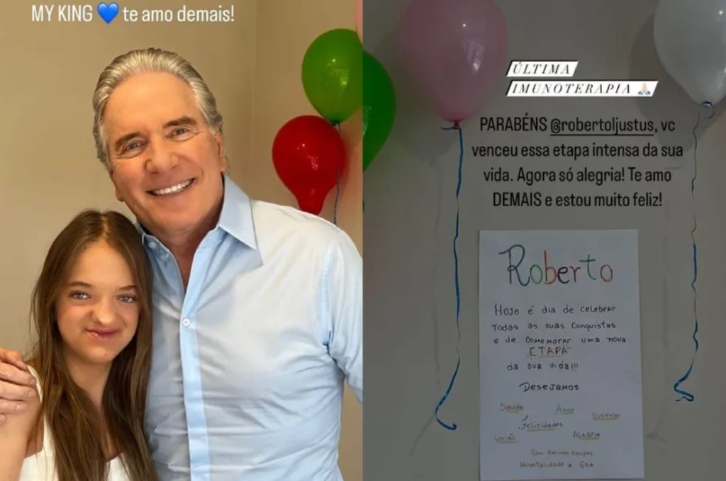 Rafaella Justus, outra filha do empresário, fruto de relação antiga com Ticiane Pinheiro, também deixou sua mensagem de apoio: “Parabéns, Roberto Justus, você venceu essa etapa intensa da sua vida. Agora, é só alegria! Te amo demais e estou muito feliz!”. A jovem ainda compartilhou uma imagem com balões, e uma mensagem carinhosa ao pai. “Meu rei”, escreveu ela.