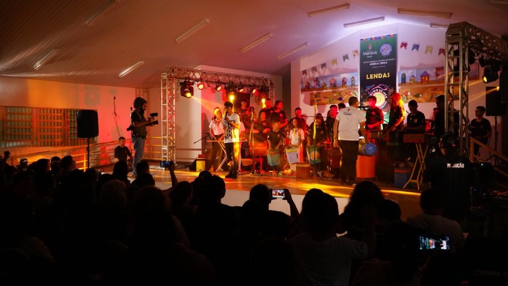 A Prefeitura de Manaus, por meio da Secretaria Municipal de Educação (Semed), realizou, na noite desta sexta-feira (10), o espetáculo “Lendas” em comemoração aos 20 anos de existência do Grupo de Percussão Alternativa Curumim na Lata, no auditório do Centro Municipal de Arte-Educação (Cmae) Aníbal Beça, localizado no bairro São José 3, Zona Leste de Manaus.
