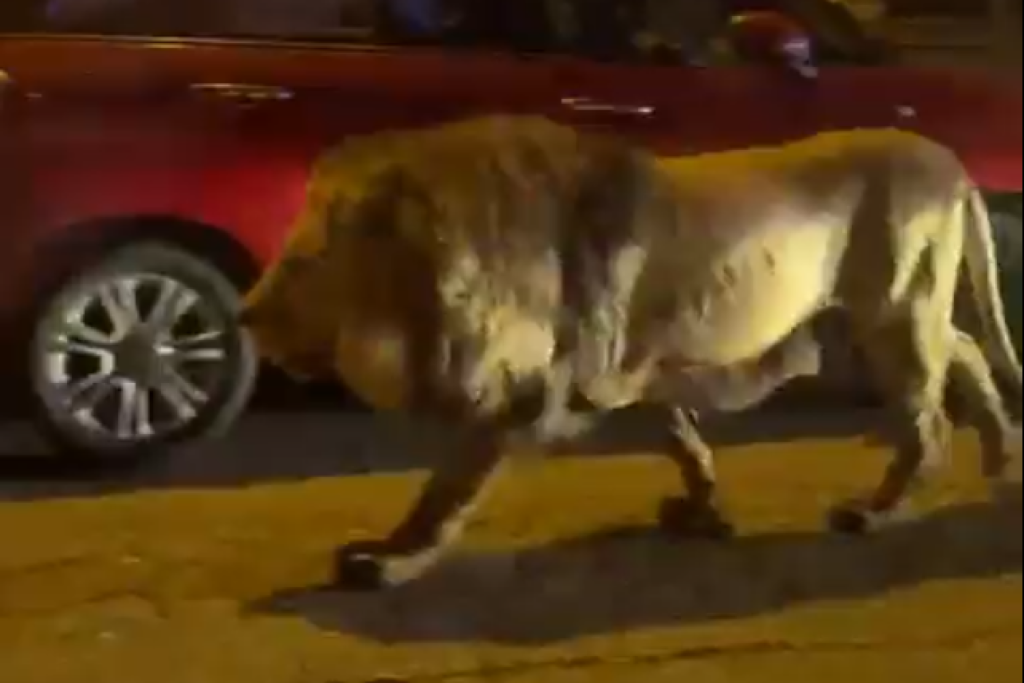 O leão foi sedado e capturado após sete horas de procura. Um helicóptero com sensores infravermelhos auxiliou nas buscas em uma área rural.